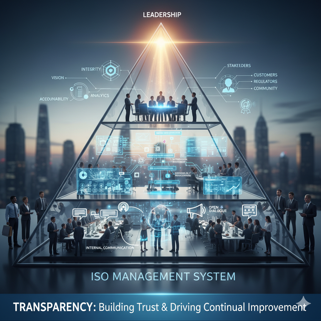 ISO 경영시스템에서 투명성은 정보를 숨기지 않고 공개하고 모든 활동에 대한 명확한 증거를 남기며 이해관계자와 진실한 의사소통을 통해 시스템의 신뢰성을 구축하고 지속적인 개선을 가능하게 하는 근본적인 조직의 모티브이자 운영 방식이 될 수 있다.