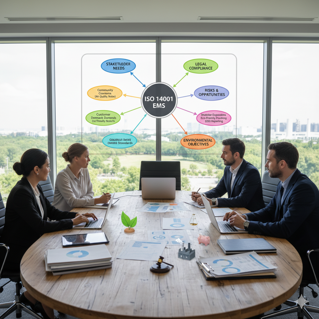 다양한 이해관계자가 요구하는 환경적 이슈( 오염물질 배출 감소, 친환경 제품 개발, 탄소 배출 저감 등)는 조직이 환경 경영시스템(EMS) 적용 범위를 결정하고 환경 목표를 설정하는데 직접적인 영향을 행사한다.