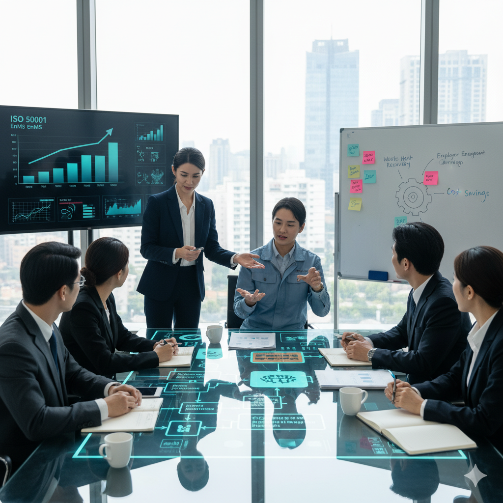 - 에너지 경영 시스템 구축 - ISO 5001 등 에너지 경영 시스템의 도입으로 에너지 활용 목표 설정, 데이터 측정, 지속적인 개선 활동을 체계화한다.