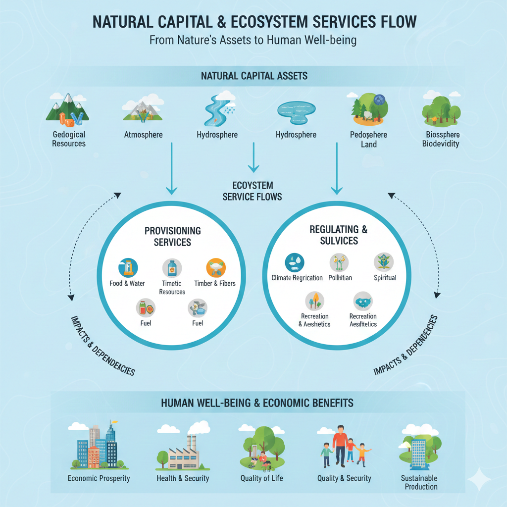 지구상의 자연자원 물, 광물, 토양, 공기, 생물 다양성 등과 이들이 제공하는 생태계 서비스 공기 정화, 수질 정화, 탄소 저장, 기후 조절 등을 포함하여 지속적으로 우리 인류에게 유익한 흐름을 제공하는 자산이다.