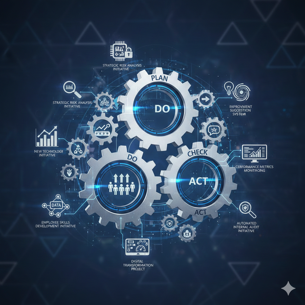 PDCA 사이클을 기반으로 운영하며 이니셔티브는 주로 계획(P), 실행(D), 개선(A) 단계에서 중요한 역할을 한다.